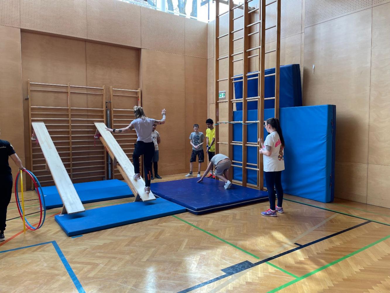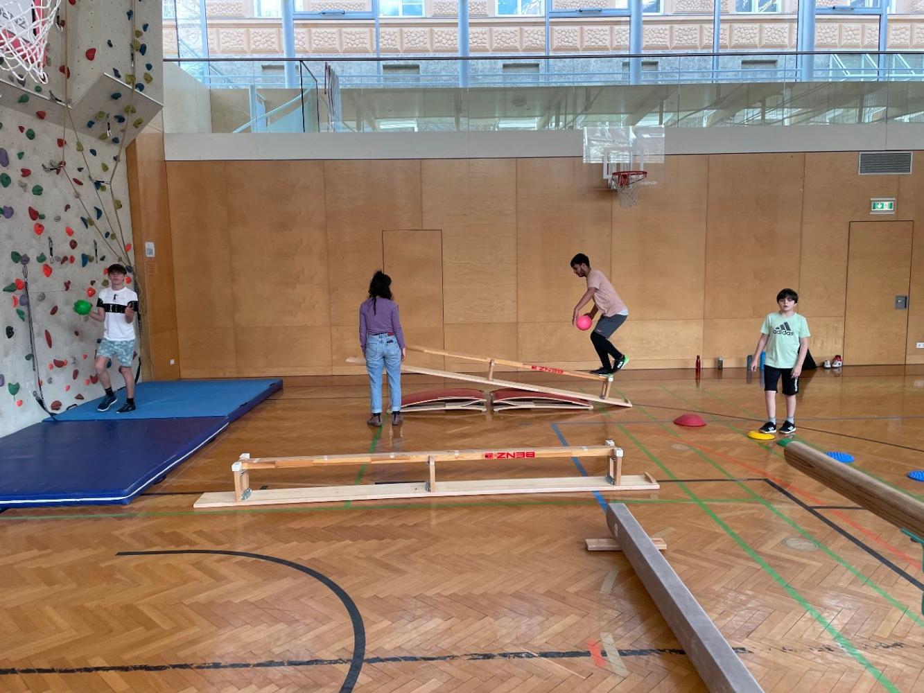 Im Rahmen des Unterrichts wurde für Schüler der MSK a und MSK b eine abwechslungsreiche Bewegungslandschaft aufgebaut. Verschiedene Stationen luden dazu ein, zu klettern 🧗, zu balancieren ⚖️, zu springen und sich vielseitig zu bewegen.